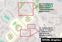 Среди адресов, упомянутых изданием, упоминается "шпионский дом" на улице Удальцова, его точный адрес в скриншоте распоряжения мэра Москвы Юрия Лужкова авторы статьи замазали. Радио Свобода нашло два документа, описывающих передачу домов на улице Удальцова от СВР в собственность города: они касаются зданий с адресами улица Удальцова, дом 87 корпус 4 и улица Удальцова, дом 87 корпус 5. Всего по адресу Удальцова, 87 расположено 5 строений. Корпуса 1 и 2, детский спортивный центр и пожарная часть, были построены еще в советское время. Корпус 3, где прописан Эдуард Худайнатов – жилой 12-этажный дом с подземным паркингом, построили в 1997 году. Жилые корпуса 4 и 5 – в 2000 и 2001 годах соответственно.